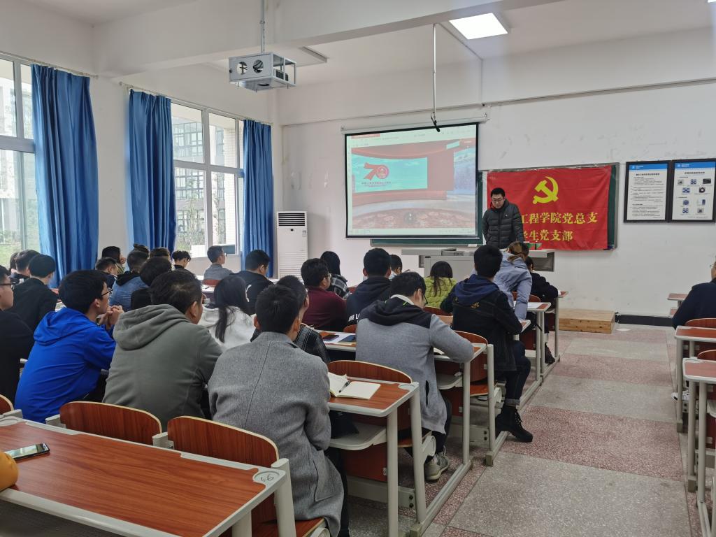 11月14日下午,76net必赢线路检测中心党总支学生党支部组织观看了“伟大历程 辉煌成就——庆祝中华人民共和国成立七十周年大型成就展”网上展馆,在“不忘初心、牢记使命”主题教育中进一步加强爱国主义教育、弘扬爱国主义精神。党支部全体党员、入党积极分子到场观看。