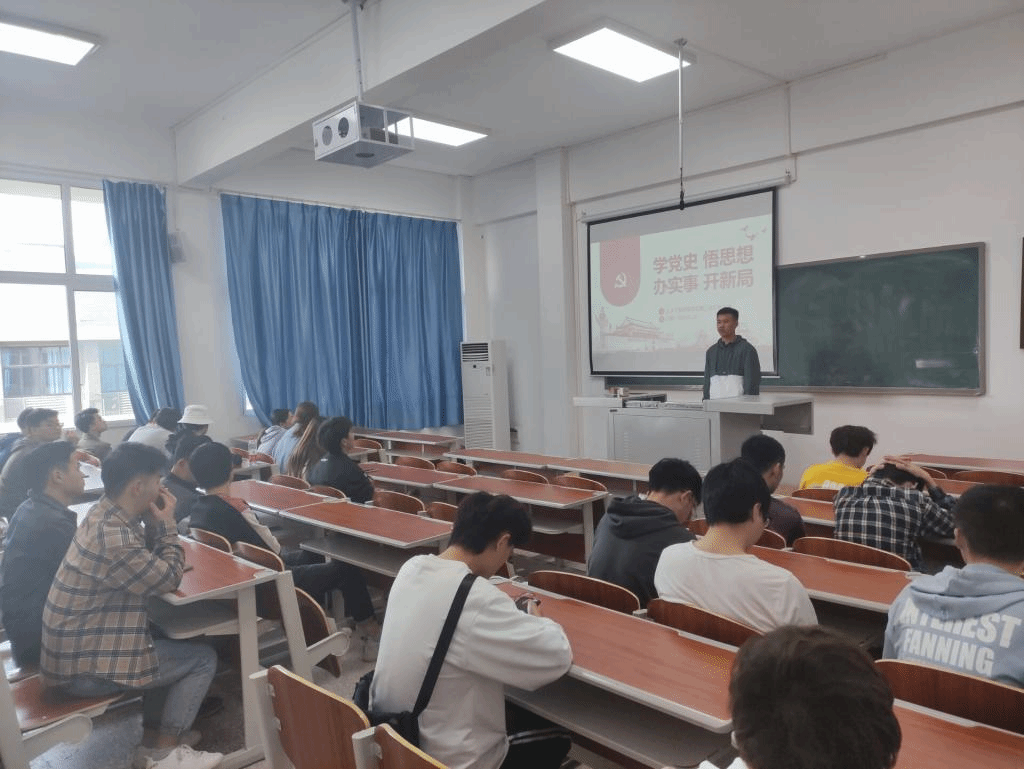 李果同志以“学党史 悟思想 办实事 开新局”为题,围绕“学党史的重大意义”、“中国共产党的光辉历程”、“做合格青年 永远跟党走”三个方面对党的奋斗历程进行了`回顾,以史为鉴理清历史脉络,希望广大学生党团员通过党史学习教育,不断提高治素养,坚定理想信念,坚定政治立场,厚植爱国主义情怀,做一个强信念、听党话、跟党走的新时代有为青年,为实现中华民族伟大复兴努力奋斗。