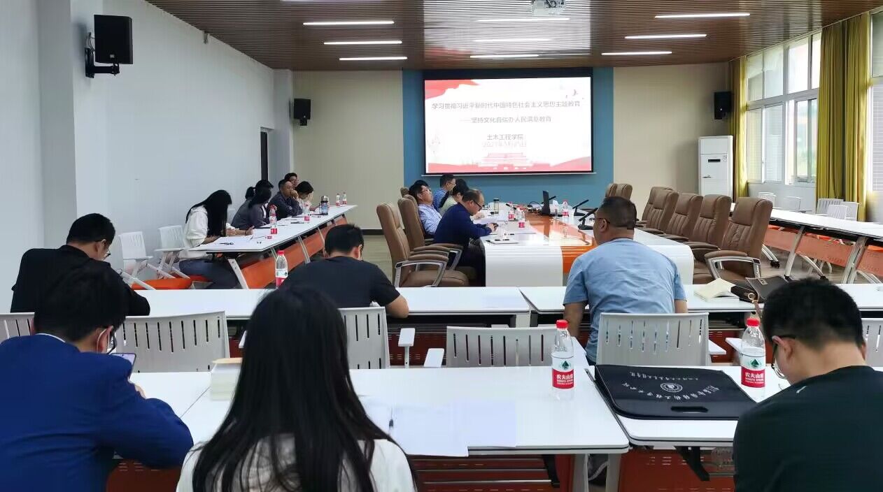 为深入开展学习贯彻习近平新时代中国特色社会主义思想主题教育,全面学习宣传贯彻党的二十大精神,坚持社会主义办学方向,落实立德树人根本任务,践行为党育人、为国育才初心使命,不断提升创新人才培养水平,5月25日下午,我院在慎思楼5栋520室召开主题教育专题学习会议--坚持文化自信办人民满意教育,会议由党总支书记罗雪主持,学院全体教职工参加。