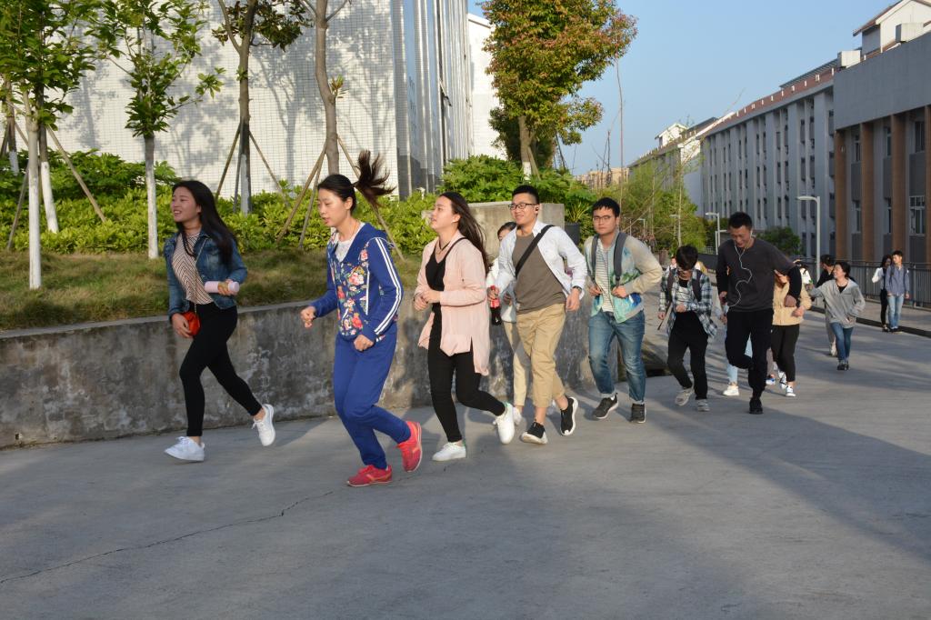 晨光微露,整个校园还沉寂在一片静谧之中,学生宿舍25栋楼前已聚集了2015级“专升本”的同学们,他们从25栋出发,在教学楼岔路口折返。