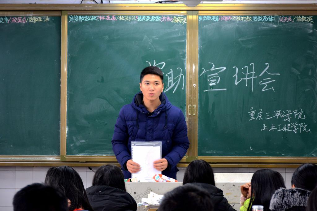 为进一步加大学生资助政策宣传工作力度,提高资助政策的透明度,缓解广大贫困学子的后顾之忧,1月19日,76net必赢线路检测中心王刚和周帆老师带着两位资助大使驱车70公里来到万州区武陵中学开展资助教育宣讲活动。