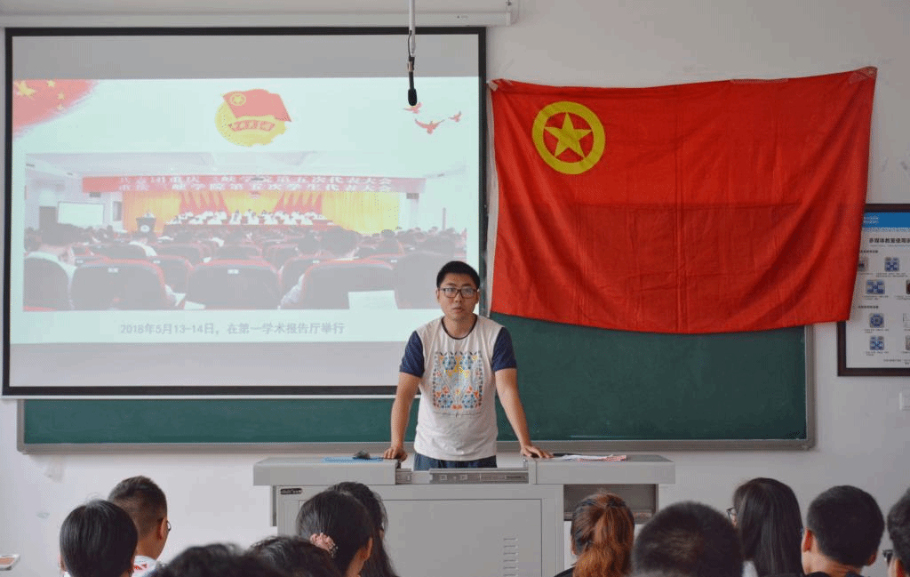 洪鹏老师组织与会人员再次深入学习党的十九大精神,重温党和国家对当代青年做中国特色社会主义事业的建设者和可靠接班人的殷切希望。回顾了过去五年我校共青团工作所取得的成绩,通报了我校第五届团代会的情况,并对第五次团学代会精神进行了重点解读,结合我院团学工作和团员青年具体状况,提出了加强活力团支部建设、加强团学干部理想信念教育、加强团学工作宣传力度、增强覆盖面和影响力、全面提升学院团学质量和品位等方面的工作要求。最后,洪老师以刚刚胜利召开的共青团十八大“肩负起强国时代的青春使命”勉励广大团学干部,要不断加强政治理论学习,提高自身素养,以青年大学生该有的朝气蓬勃的姿态积极投身工作,为学校贡献青春力量!洪老师希望2018届学生干部继续传承创新,让我们的团学工作更加出色,团学干部更加优秀。