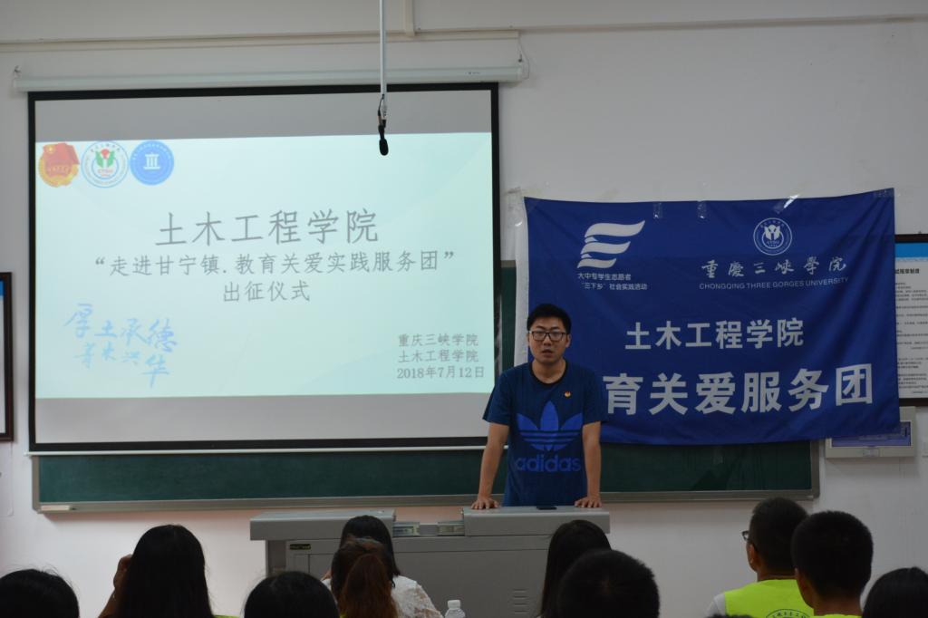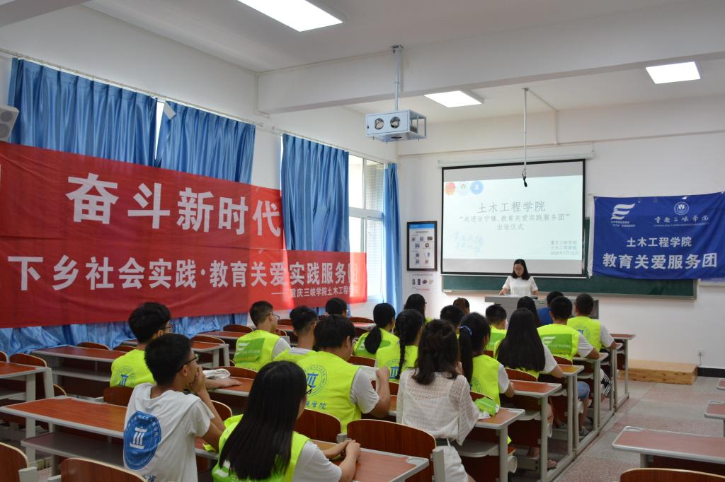 7月12日上午76net必赢线路检测中心在D1-308教室举行2018年暑期“三下乡”社会实践出征仪式。学院党总支副书记张小梅、团总支副书记兼学工办副主任洪鹏及26名志愿者参加了本次活动。