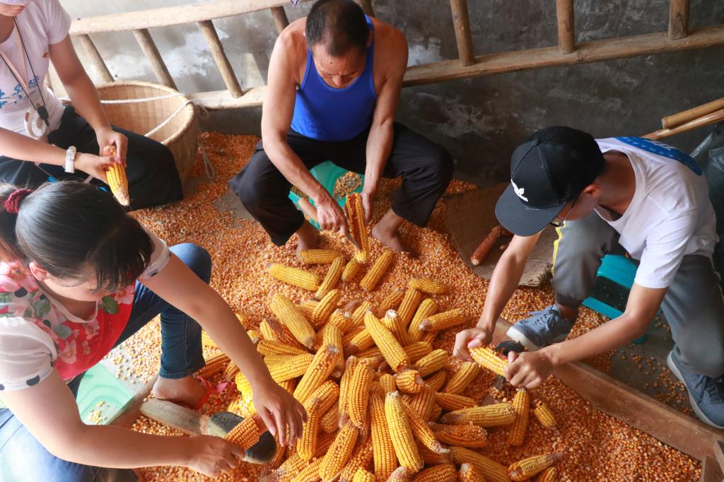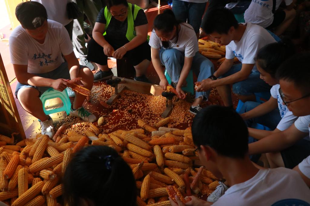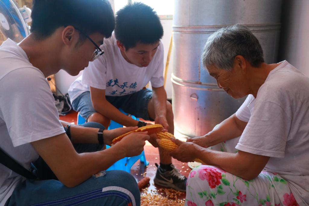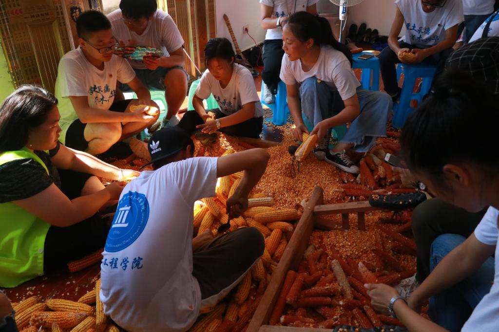 志愿者们走进甘宁镇甘宁乡吴奶奶家,用实际行动为吴奶奶送去夏日的清凉。时值酷暑,吴奶奶家正在剥玉米,左右两户人家的玉米加起来足足堆了半个屋子。教育关爱服务实践团共24位志愿者一到吴奶奶家就开始干起活儿来,帮助吴奶奶剥玉米,晒玉米粒。志愿者们在劳动过程中与吴奶奶热情的聊着家常,并在过程中向吴奶奶耐心细致的讲解国家的扶贫政策和当地政府落实国家扶贫政策的相关举措。临走前,吴奶奶紧紧抓住志愿者的手,对志愿者们表示十分的感谢,吴奶奶说“这些玉米是我们前后两户一起的,我们自己剥至少得剥两天。现在国家政策好,你们这些大学生都好,帮我们干活儿,还清扫屋子,我们老俩口的日子也越过越好了。”