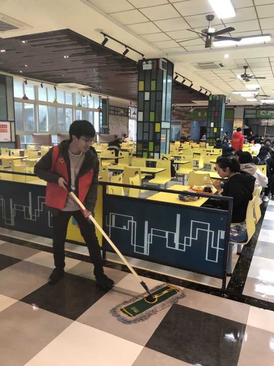 活动中,志愿者们统一着装,意气高昂,兴致勃勃,表示愿意为一个更加清洁的教室、一个更加美好的校园奉献自己的一份力量。在教室,志愿者们自带打扫工具,擦黑板,清理桌兜,扫地,拖地,整理讲台……同学们相互配合,认真劳动,积极为同学们提供一个良好清洁的学习环境;在食堂,志愿者们主动投身收残、清洁餐桌、整理餐盘等工作岗位,认真细致,积极为全校同学营造一个良好的就餐环境。