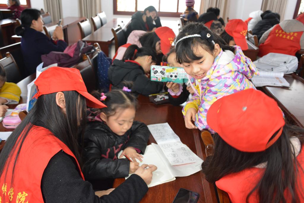 义务家教活动采取“一对多”的教学辅导模式,每位志愿者根据自身所长负责不同的课程。期间,志愿者结合学生实际情况,因材施教,与学生进行“一对一”的免费课业辅导,解答他们在课业上的疑惑,针对他们的薄弱学科进行强化。小朋友们都积极地和志愿者们进行交流和学习,部分孩子在完成作业后与志愿者们一起分享学习生活中的趣事,欢声笑语朗朗传来。