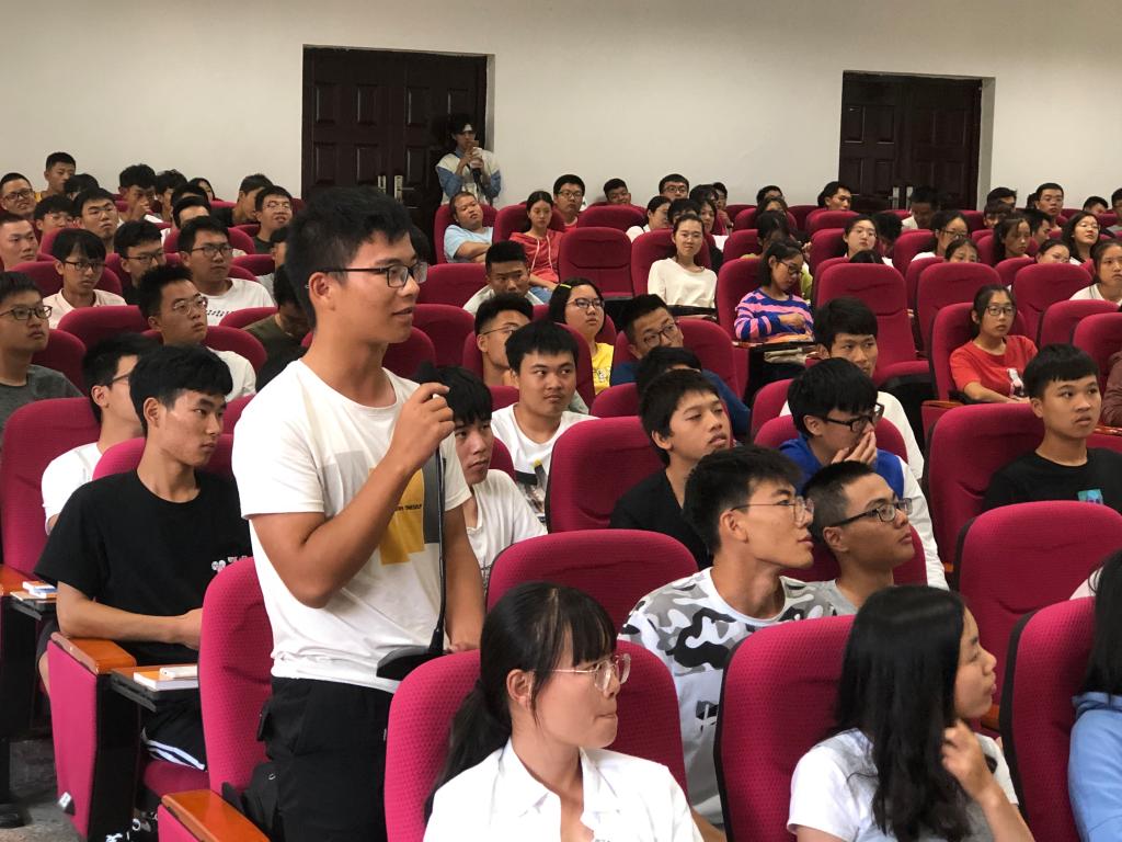 交流互动环节中,刘斌杰针对同学们关于英语等级考试、专业资格证书考取使用、大学爱情观、女生就业、研究生考试等问题与同学们分享了自己的看法观点。