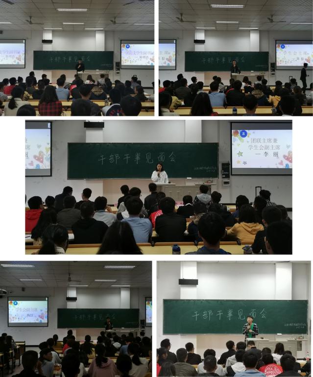 团总支书学生副书记陈明浩希望同学们能处理好人际交往礼仪,积极投身团学工作,部门之间团结友爱,共筑美好团学会家庭。学生会主席陈松希望大家争做新时代向上的优秀团员青年、珍惜光阴,珍惜平台、明确身份,坚守主业、帮得了同学,做得了表率,管得住自己。团联主席李丽要求同学们继承团学会一直以来的优良传统并将其发扬光大。学生会副主席杨印送给同学们四个字“精致优雅”,精致做事、优雅做人。学生会主席杨志仁要求同学们做到工作、学习两不误,在忙碌中寻找平衡。