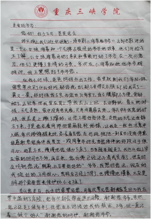 九九重阳凝聚了中华民族千秋万代“老吾老”的浓浓深情和生生不息的民族风范。为弘扬中华民族尊老、敬老、爱老的传统美德,10月7日,76net必赢线路检测中心团总支举办了“孝似朝阳•信在重阳”的主题观影活动,2019级全体同学观看了电影《海蒂与爷爷》并写信给自己最思恋的长辈。