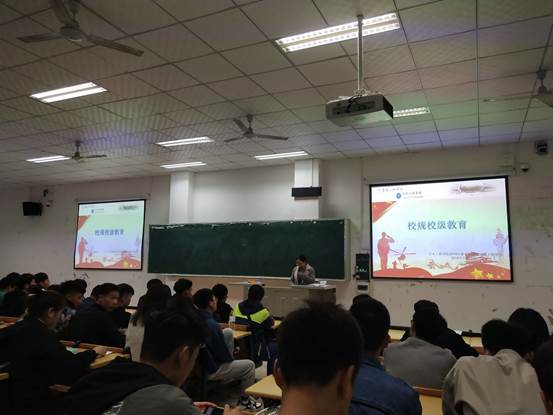 为进一步深化绿色德育美育教育,强化警示教育,规范学生日常行为,积极营造优良学风,自觉维护大学生形象,11月3日晚,76net必赢线路检测中心党总支副书记兼2018级辅导员张小梅组织召开“建设文明校园,遵守校规校纪”主题教育班会,2018级全体学生参加学习活动。