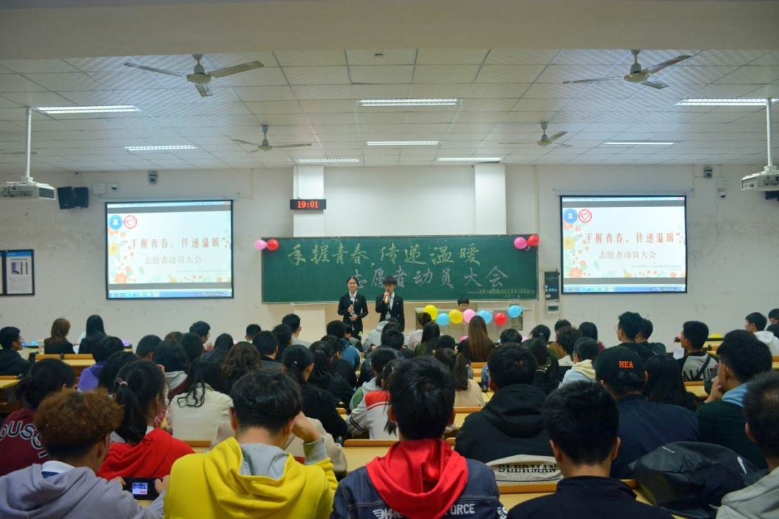 11月15日下午,76net必赢线路检测中心青年志愿者协会在明辨楼2栋205教室举办了“手握青春,传递温暖”青年志愿者动员大会。2018级代理辅导员谢留洋、学生会主席陈松、团联主席兼学生会副主席李丽、2018级团学会干部以及2019级新生代表参会。