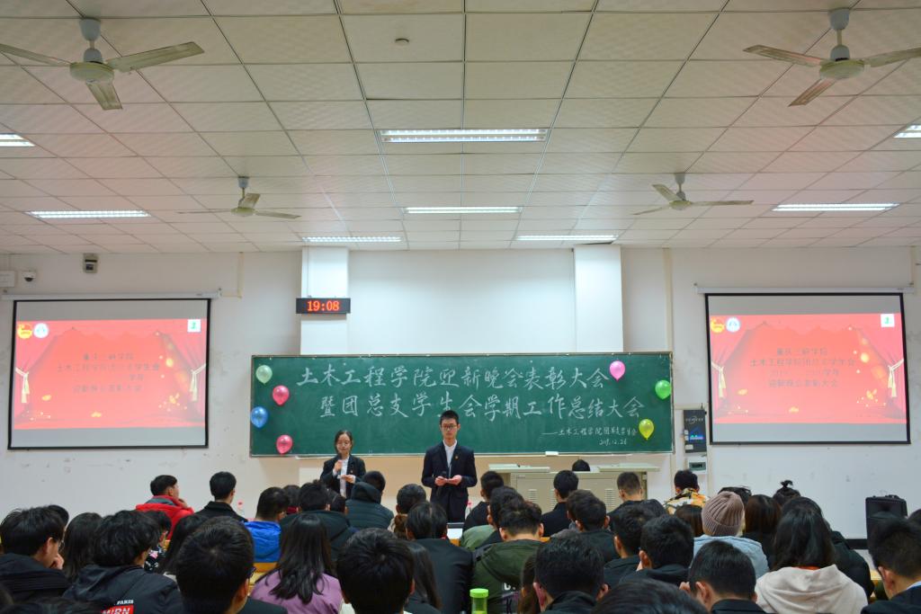 为肯定在“万众瞩目,砼心筑梦”2019年迎新晚会上做出积极贡献的学生,激发工作热情,表彰先进,12月26日晚,76net必赢线路检测中心在明辨楼2栋205教室召开了2019年迎新晚会总结表彰大会。学院团总支副书记洪鹏、各年级辅导员、团总支学生会全体干部干事以及迎新晚会各节目演员代表参加会议。