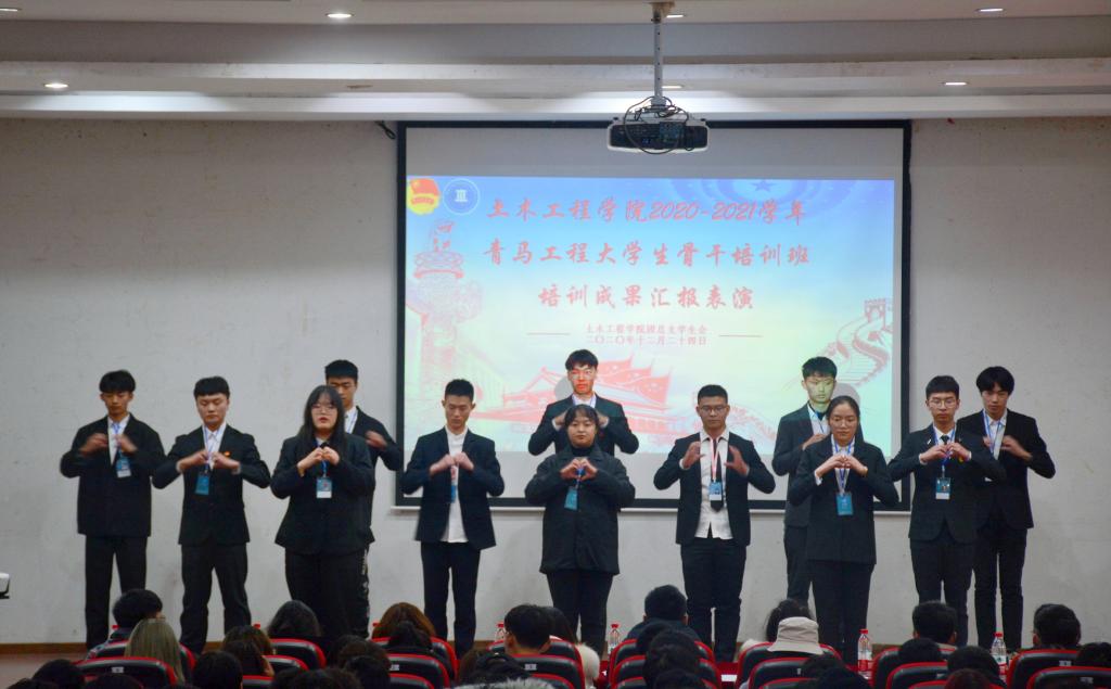 为不断提高大学生骨干、团干部等青年群体的思想政治素质、政策理论水平、创新能力、实践能力和组织协调能力,使他们进一步坚定跟党走中国特色社会主义道路的信念,成长为中国特色社会主义事业的合格建设者和可靠接班人,76net必赢线路检测中心开展了为期两个多月的青马工程·精英团校培训班,并于12月24日下午在明辨楼2栋104报告厅举办了2020-2021学年青马工程大学生骨干培训活动结业典礼暨成果汇报大会。学院党总支副书记张小梅、团总支副书记洪鹏、各年级辅导员、主席团成员出席担任活动评委,青马工程培训班全体成员、院学生社团代表及高年级各班级学生代表参加。