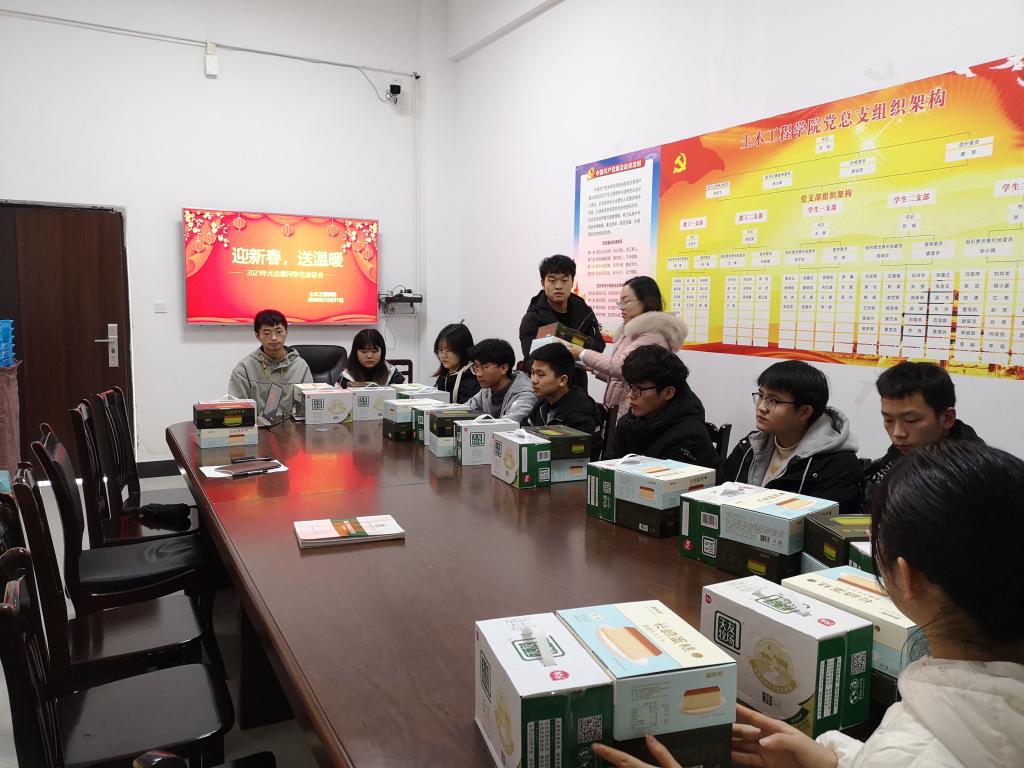 最后,张小梅代表学院给同学们发放了牛奶、蛋糕等慰问品。同时,学院给家庭经济特别困难的学生提前发放了300元/人的寒假返乡费。