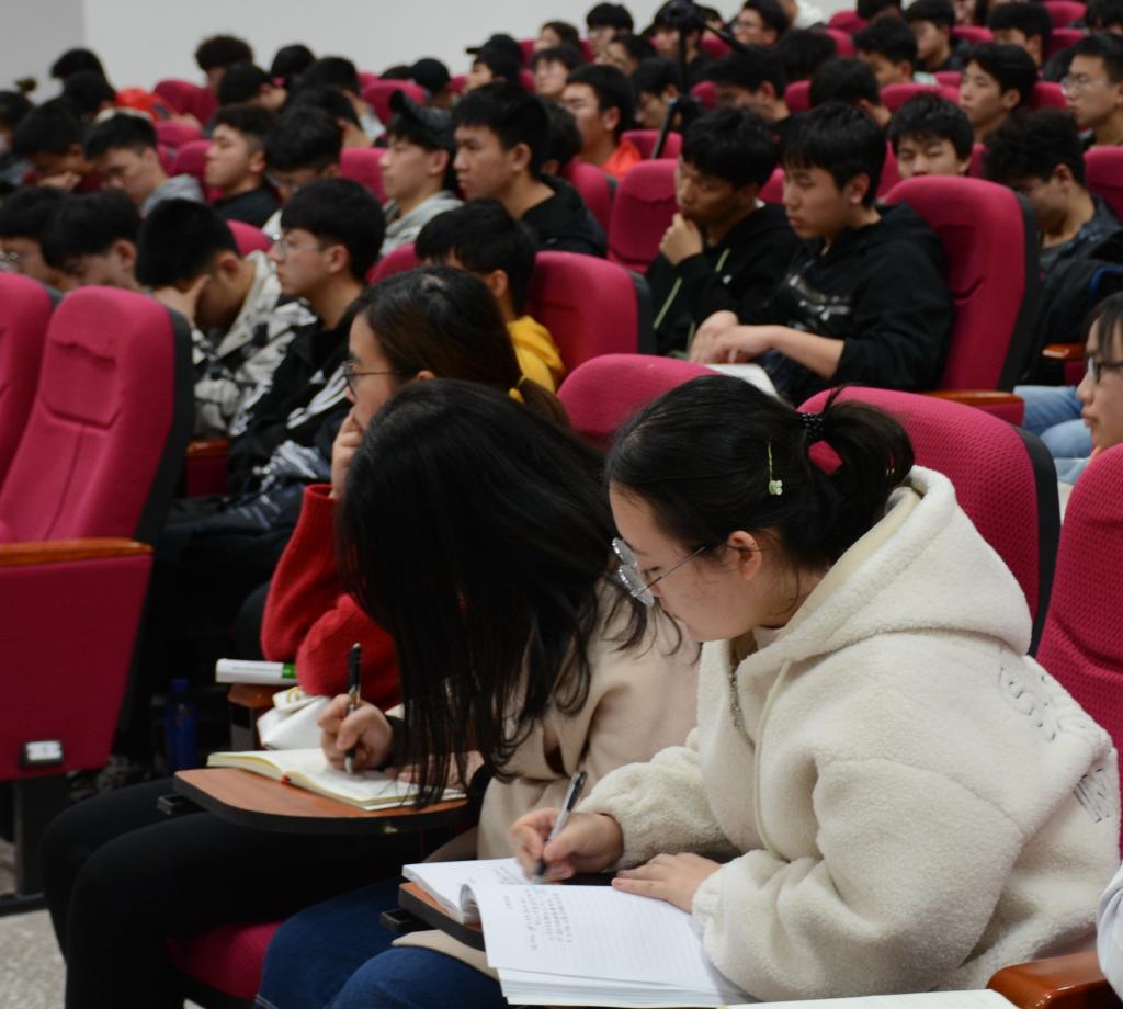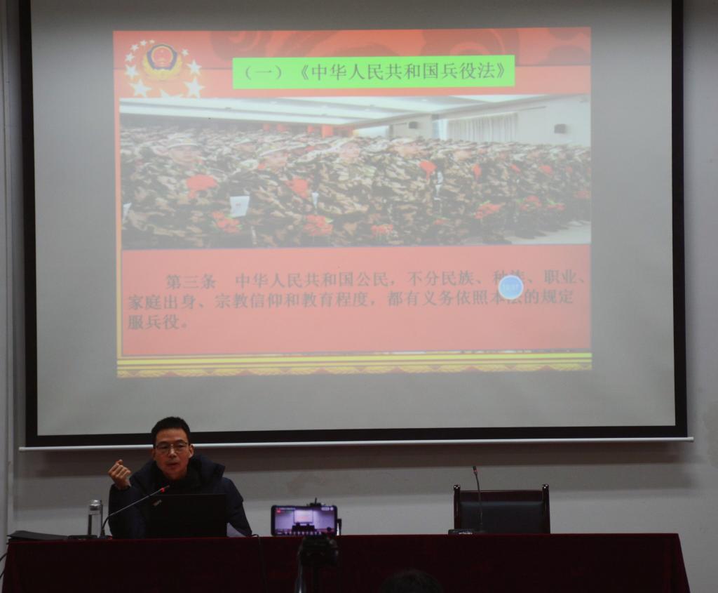 骆炳山同志结合实际案例和自身经历,分别从《中华人民共和国兵役法》及相关法律法规,“两征两退”政策和退役军人保障法等三方面生动阐释了参军入伍是每一名符合要求青年的责任和义务,参军入伍经历是人生的一笔宝贵财富,同时参军报国也是磨砺人生、实现理想的重要途径;鼓励学院优秀有志青年踊跃报名参军,到军营中体验别样青春、书写精彩人生,用青春热血助力强军梦想。