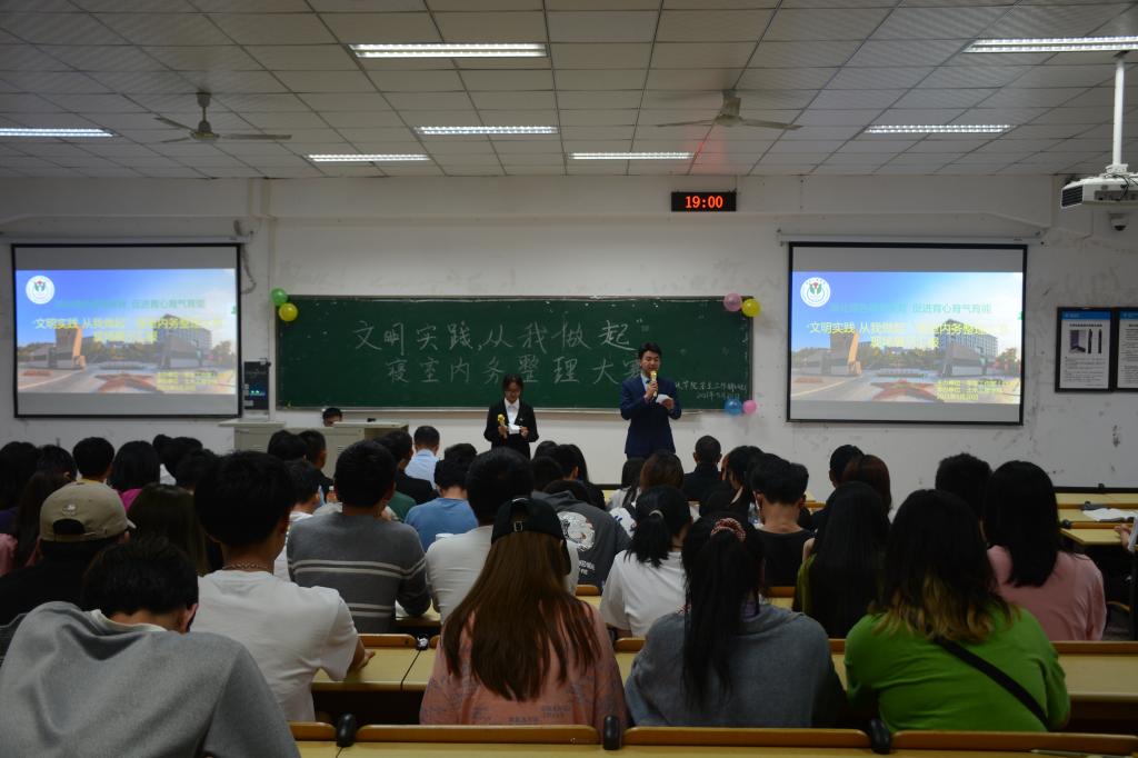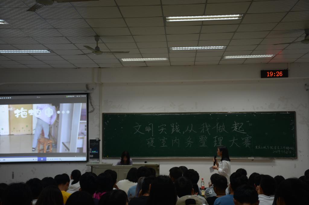 为进一步深化绿色德育美育,持续推进文明公寓、文明寝室创建工作,营造安全、文明、卫生的校园住宿环境,5月20日晚,由必赢国际部(处)主办,76net必赢线路检测中心承办的“文明实践 从我做起”寝室内务整理评比大赛现场展示汇报如期举行。计算机科学与工程学院党总支副书记刘文菘、外国语学院党总支副书记黄琰、机械工程学院党总支副书记黎涵、马克思主义学院党总支副书记向春荣、学生处公寓管理中心伍应忠等老师应邀担任评委。