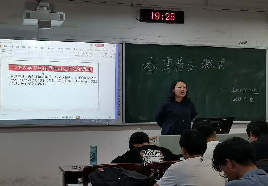 为进一步引导青年大学生树立社会主义法制理念,增强法治意识,5月18日晚,76net必赢线路检测中心2020级土木类2班在明辨楼1栋314教室召开了“普法教育”主题班会,辅导员高敏组织并主讲。