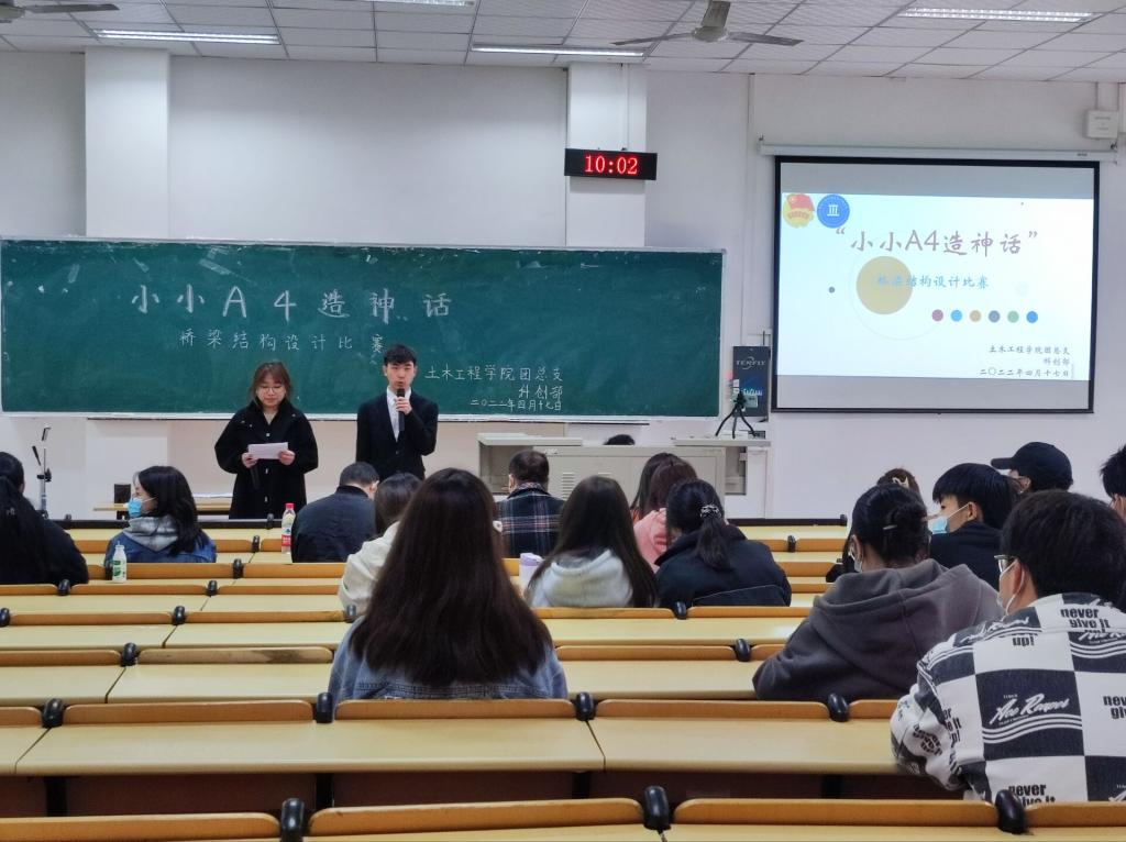 4月17日,由76net必赢线路检测中心科创部举办的“小小A4造神话”桥梁结构设计比赛在明辨楼二栋206拉开帷幕。学院教师熊礼全、姜开渝、研究生谷易、主席团成员罗艺萱担任本次比赛评委。