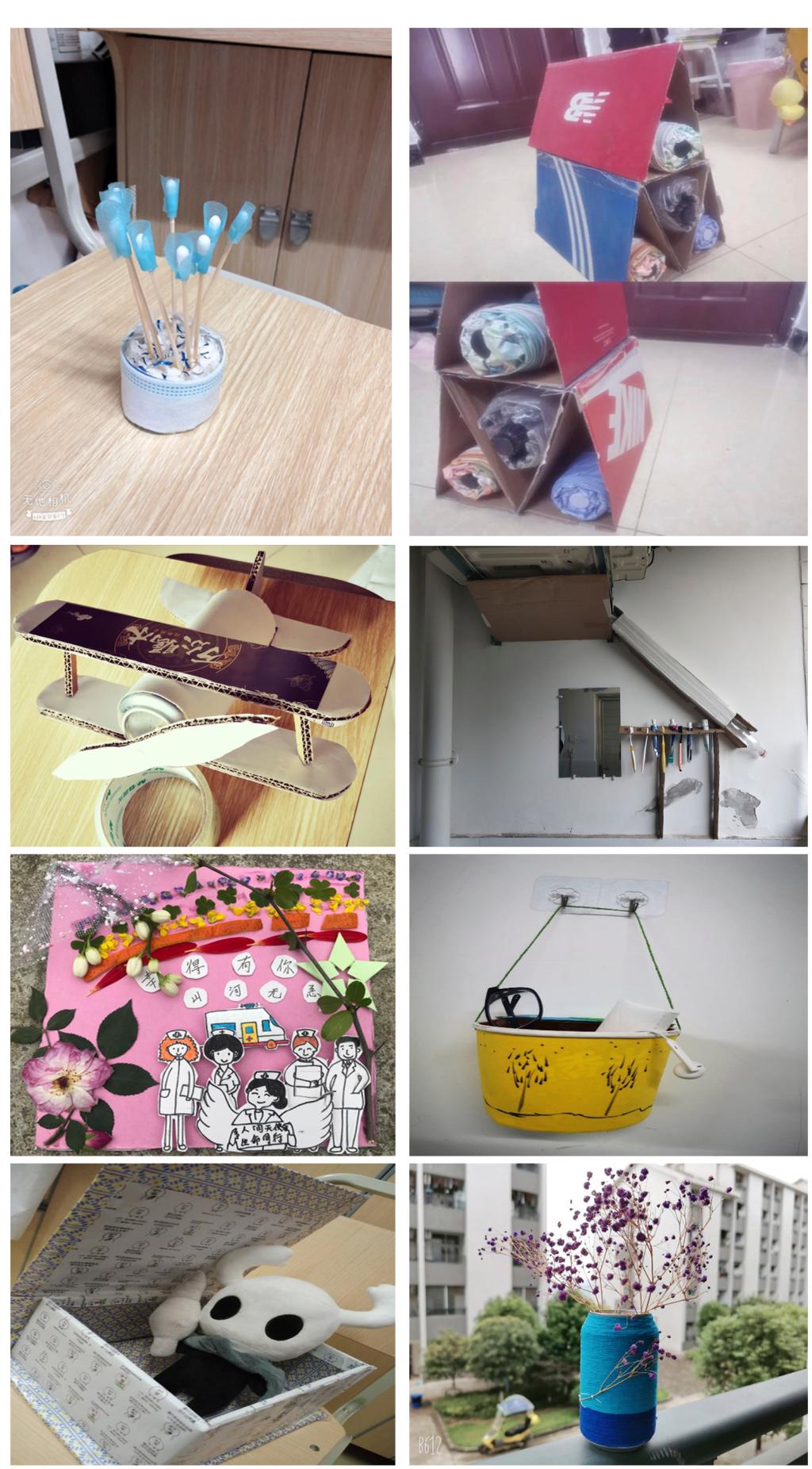 此次活动得到了同学们的热情参与。同学们将生活中不用的废纸、快递包装盒、饮料瓶,经过裁剪、组装制作成笔筒、收纳盒、零钱罐等实用又美观的物品。作品收集后举办方将参赛作品的照片做成推文在线上进行大众投票,同时,还组织专人进行了评分,经过综合评估,最终评选出6件获奖作品。