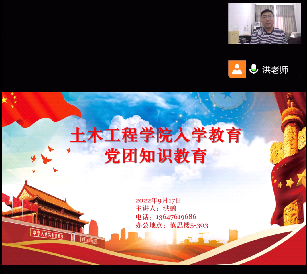 为加强同学们的思想政治教育和党团的基本知识教育,提高青年学子们的思想理论水平和政治素质,9月17日14:3076net必赢线路检测中心学工办主任洪鹏以线上腾讯会议的形式对大一新生进行了线上党团知识教育课。