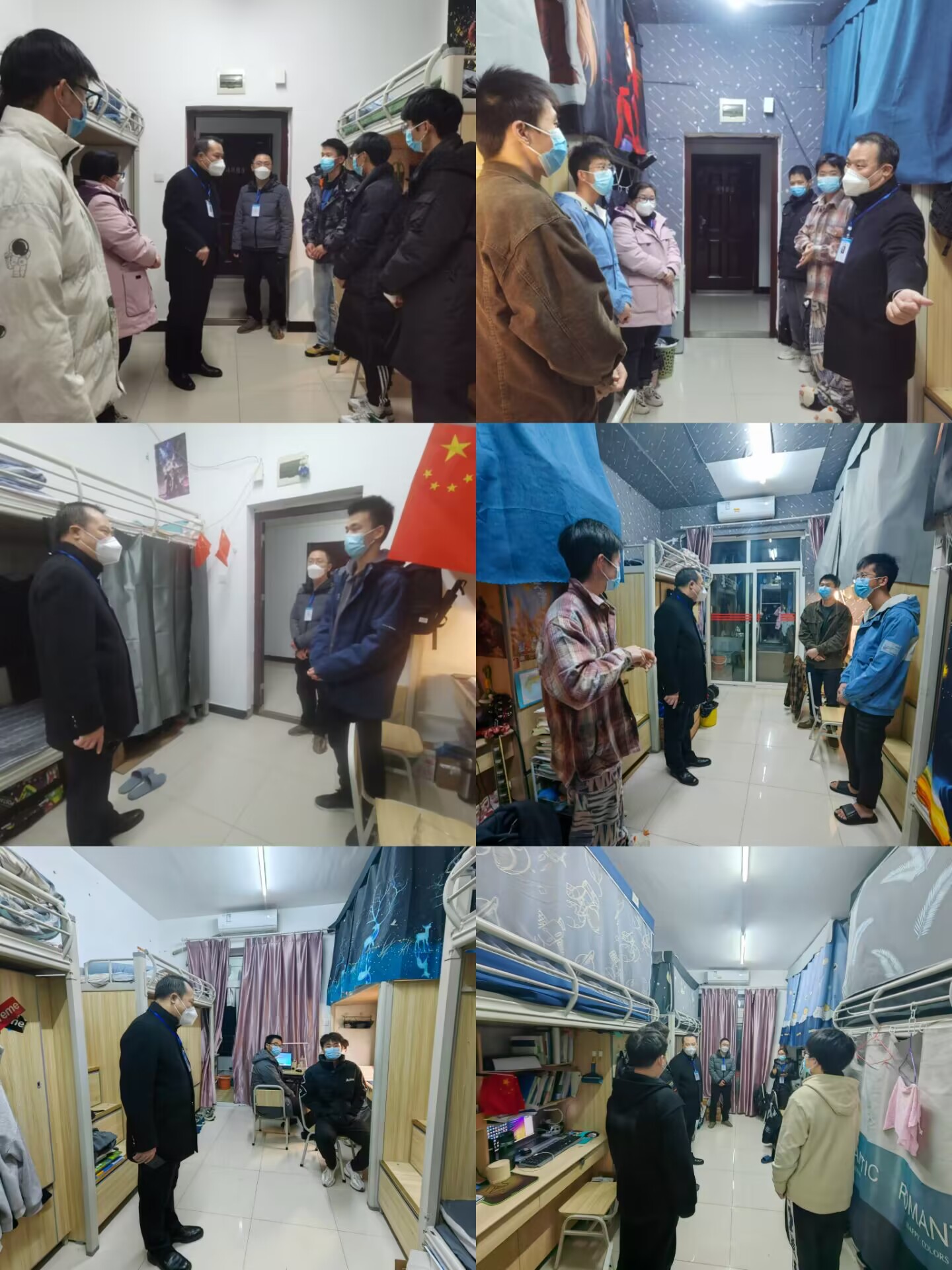 “你的家乡在哪里?”“学习生活上有什么困难?”“你对学校有哪些意见建议?”“在哪里服兵役?”在走访过程中,臧小林与同学们进行亲切交流,详细了解了同学们的学习、生活情况,分析了当前疫情防控形势,介绍了我校的疫情防控要求,希望同学们识大体、顾大局,履行好自我健康第一责任人的职责,严格遵守学校疫情防控要求,做好自我管理和自我监督,师生共同努力,确保校园无“疫”;要珍惜“室友”这份难得的缘分,互相尊重、互相关心、互相包容,共同创造一个积极向上、温馨舒适的宿舍环境;要珍惜时间,努力提升自己专业水平,练就过硬本领,不负青春,不负韶华。走访过程中,师生脉脉温情和阵阵笑声在寝室中流淌。同学们纷纷表示,要自觉遵守学校疫情防控政策,努力学习,认真备考,掌握扎实的专业知识,练就过硬本领,不负时代、不负韶华,在新的征程中贡献青春力量!