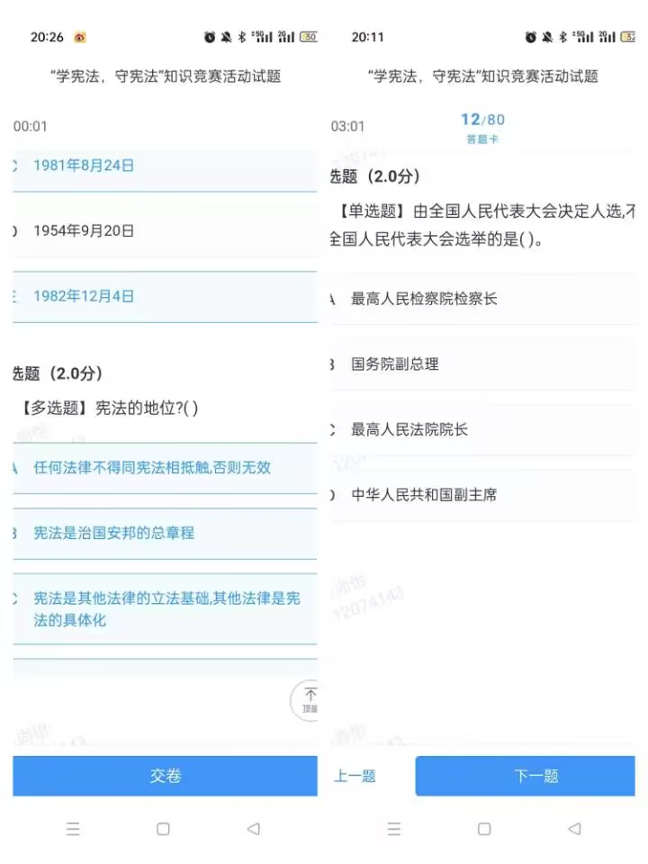 本次“学宪法 守宪法”知识竞赛以宪法知识为主要内容,主要考察了宪法的领导核心地位、党和国家的指导思想、公民的基本权利以及第五次宪法修订等相关内容,题型包括单选题、多选题以及判断题。共有112名同学参加,参赛选手们按照比赛规则有序进行答题,严格遵守竞赛纪律,沉着冷静地进行答题。最终古梨华同学获得一等奖;程静怡、喻小里同学获得二等奖;刘祥林、穆先萍、杨帆同学获得三等奖;欧阳宇俊、吴敏、李汶芸等9名同学获得优秀奖。