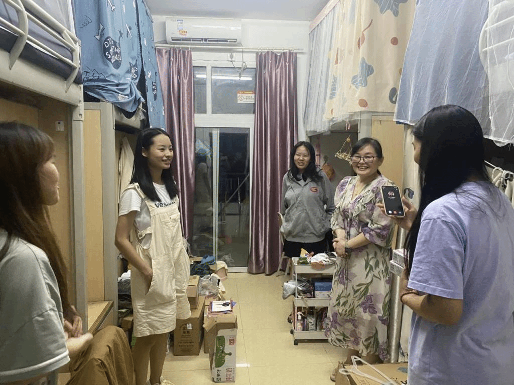 慰问过程中,罗雪和强跃走进学生宿舍同留校学生深入交流,关切询问了解大家食宿情况和学习计划,耐心倾听大家的期盼建议。“暑期留在学校的学习计划是什么,想家了没有?”“生活和学习上有什么不便和困难,还需要学院帮助些什么?”“暑假留校学习任务重,你们也要劳逸结合、注意身体啊”……亲切温暖的语气、饱含真情的叮咛,传递着学院领导对暑期留校学生的关怀厚爱。同时,罗雪向同学们强调了学校和学院关于暑期留校的各项要求,提醒同学们增强安全防范意识与自我保护能力,注意宿舍消防安全与卫生状况,在进行学习充能的同时积极锻炼身体,提高个人身体素质,保持良好心态,劳逸结合,遇到问题及时与学院反馈沟通。