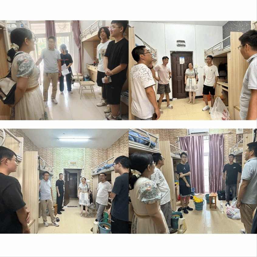 为进一步了解2023级新生的宿舍生活情况并让同学们尽快适应新环境,9月7日傍晚,76net必赢线路检测中心党总支书记罗雪,副院长刘芳平,副院长强跃,办公室主任艾娟,带领辅导员走访学生宿舍,给2023级的本科新生、研究生新生送去了问候与祝福。