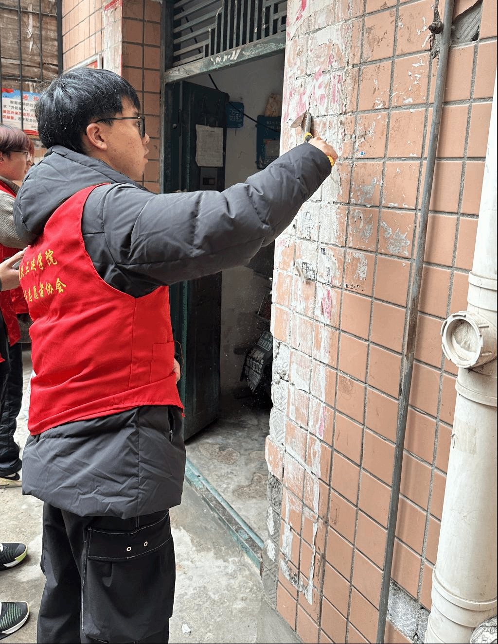 活动中,志愿者们分为三个队伍,每个队伍由社区工作人员带领。第一组志愿者们用刮铲和喷壶对街道门面的小广告进行排查清理,同时清理了街道上的垃圾。第二组负责清洁社区内卫生,他们一丝不苟地进行扫地、拖地、擦桌子,对卫生死角进行了彻底清洁。第三组前往居民区,每个人带上手套,拿上铁锹,帮助居民们铲土、运土和填土,此外还拿着小铲子铲除贴在墙上的小广告。大家积极配合,轮流换班,组织协调能力得到提高。