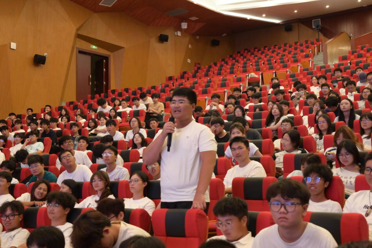 朋辈分享环节,2022级的唐道敏、欧慧玲以及2023级的古俊杰三位同学作为“校友助航”工程的在校衔接代表,结合自己的学习生活经验,为新生们提供了实用的建议。他们分享了如何平衡学习与生活、如何高效利用校园资源、如何准备学科竞赛等方面的心得,并鼓励新生们积极主动地向学长学姐请教,充分利用朋辈资源助力自己成长。现场互动环节,新生围绕职业规划、技能学习提问,助航氛围浓厚。