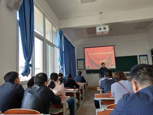 10月11日,76net必赢线路检测中心全体教职工党员在慎思楼5栋307集中学习新修订的《中国共产党纪律处分条例》,学院党总支书记方灿主持学习。
