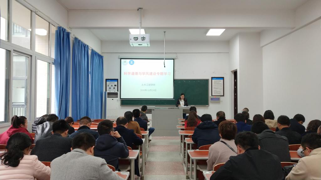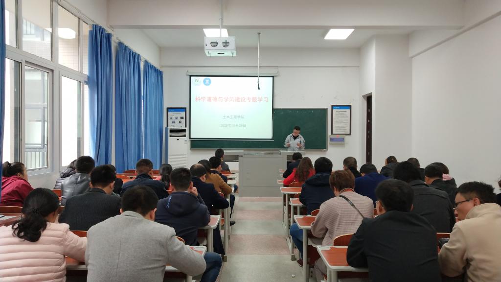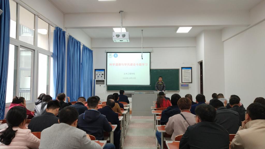 10月29日下午,学院在慎思楼5栋308召开教职工大会开展科学道德与学风建设专题学习,会议由学院党总支书记方灿主持。