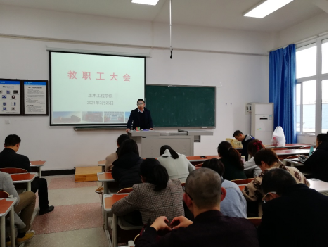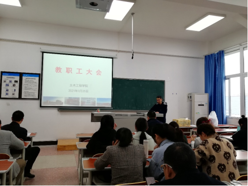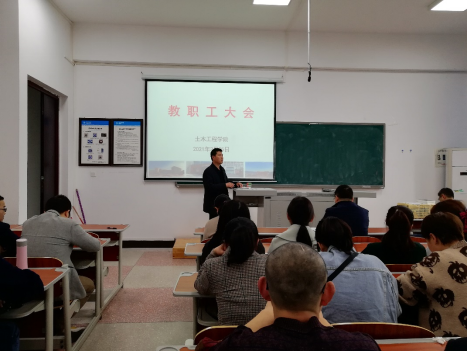 教职工大会上,方灿书记组织学习《深入学习贯彻习近平总书记关于教育的重要论述》,号召全体教职工要高度重视教育工作,牢记教书育人使命,为国家和社会培养出更多高素质人才;传达学习《重庆市教育系统反诈专项整治三年行动工作方案》文件精神,要求辅导员和任课教师要加强对学生的反诈宣传,积极组织开展反诈宣传教育活动,切实提高师生及学生家长的防诈意识和能力;进一步强调全体教职员工要加强师德师风建设,筑牢意识形态堡垒;传达布置师生接种疫苗的工作安排,并对相关注意事项进行了提醒,要求依法科学有序推进疫情防控和疫苗接种工作,避免“一刀切”、“层层加码”。郭远臣副院长从教学评价、教学竞赛、人才培养方案修订、毕业实习与设计等方面对学院近期教学工作进行了详细安排。程龙飞院长针对教学竞赛、科研和研究生培养作了以下几点强调:教学竞赛是教师教学技能提升、教学经验交流的有效途径,希望全体任课教师踊跃参与;科研上要积极申报各级各类纵横向项目和奖项,撰写专著;硕士生导师要积极带领学生参与项目和课题,提升研究生的科研能力和实践能力。