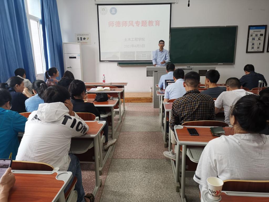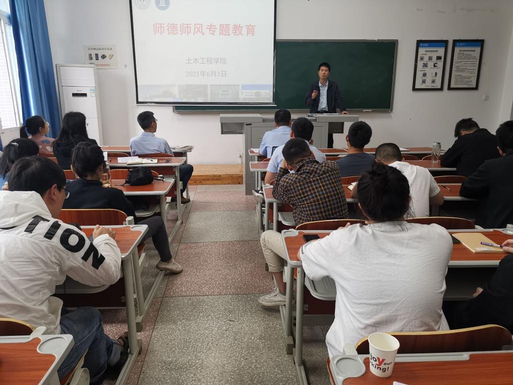 6月3日下午,76net必赢线路检测中心在慎思楼5-524A召开教职工大会,开展师德师风专题教育和党史学习教育。