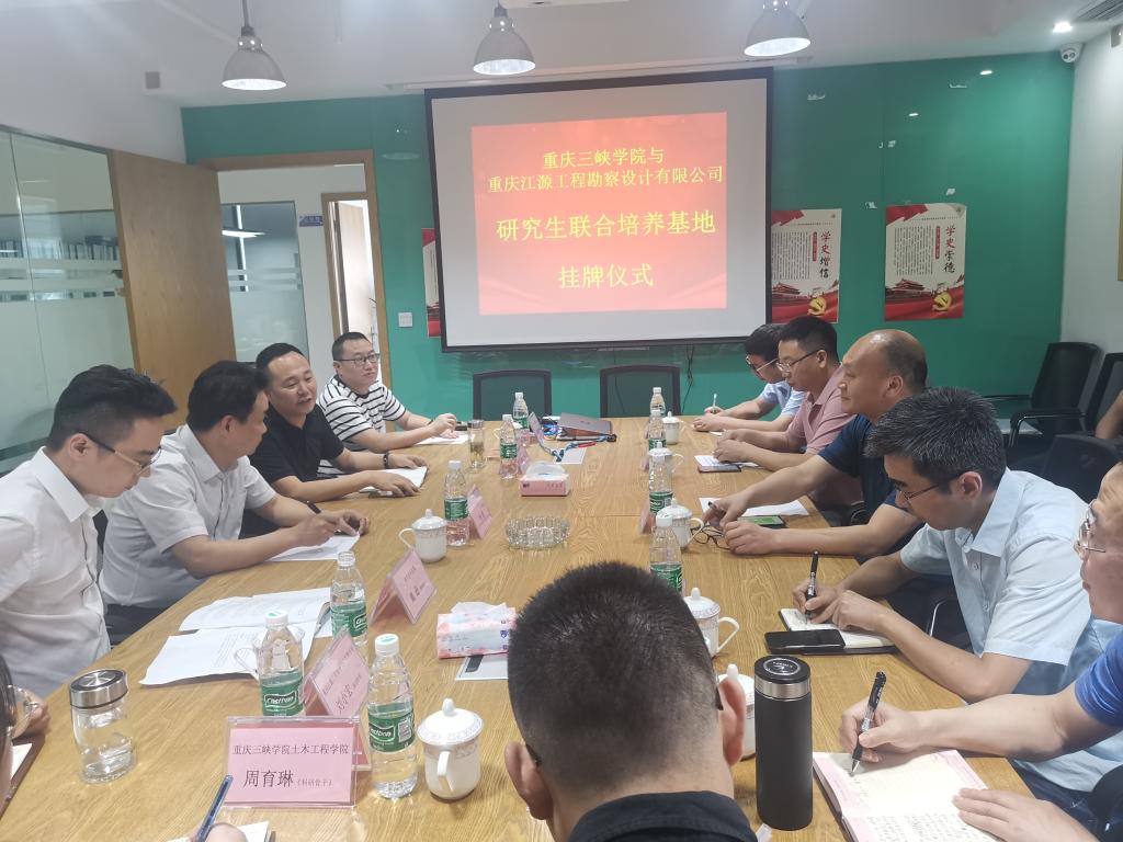 6月24日下午,必赢76net线路与重庆江源工程勘察设计有限公司(以下简称江源公司)共建土木水利研究生联合培养基地授牌仪式在江源公司会议室隆重举行。授牌仪式由江源公司总经理王永江主持,学校研究生处处长刘正学、76net必赢线路检测中心党总支书记方灿、院长程龙飞一行,奉节县委常委李润、县科技局副局长戴超、县住建委相关负责人出席。