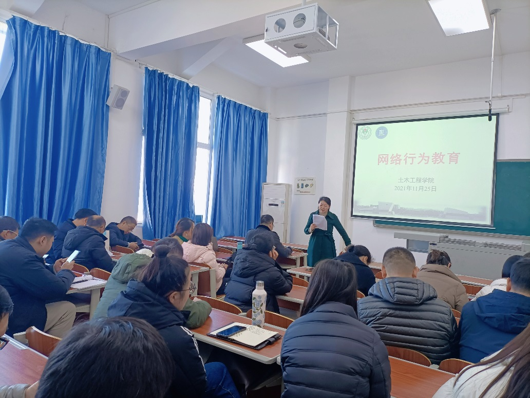 党总支组织委员蔡军解读了《中共必赢76net线路委员会关于规范党员干部网络行为的实施办法》,明确了党员干部不能参与的网络传播行为和网络活动,提醒党员干部们一定要严守政治纪律和政治规矩,规范网络行为,营造风清气正、健康向上的网络环境。