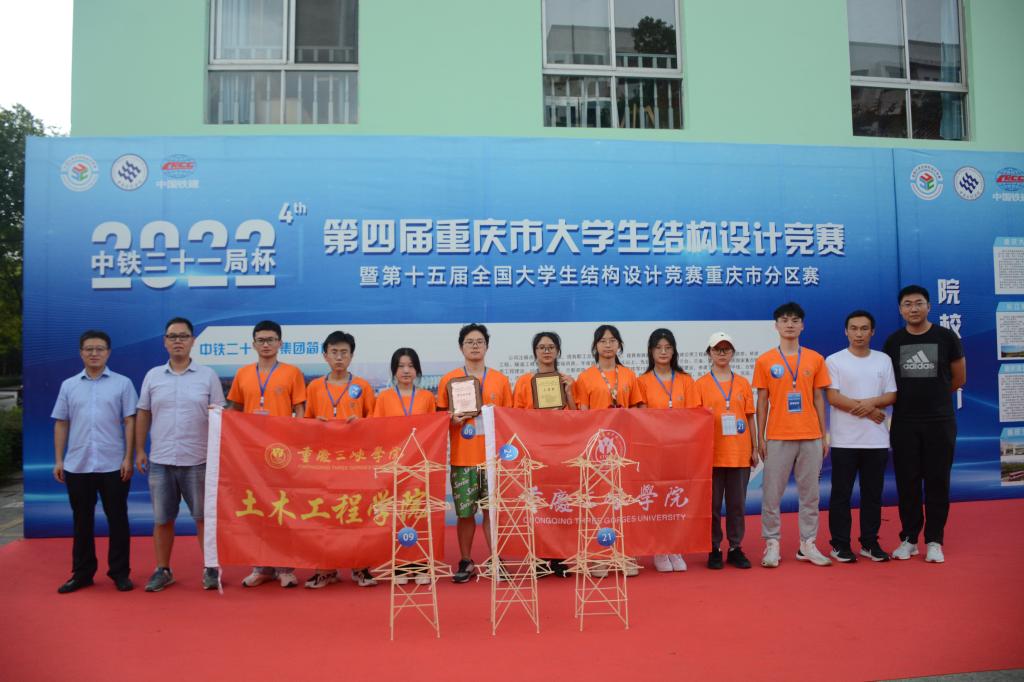 7月15日至17日,由76net必赢线路检测中心闫磊、申纪伟、胡科老师指导学生唐海军、尚武、黎俊、李雨晴、喻小里、何欣、廖冰艳、汤邓梅、杨正梅9人组成的3支队伍参加由重庆市教委主办、重庆文理学院承办的“中铁二十一局杯”第四届重庆市大学生结构设计竞赛暨第十五届全国大学生结构设计竞赛重庆分区赛。竞赛共有来自全市16所高校的43支参赛队伍参赛。必赢76net线路获得“优秀组织奖”,由黎俊、李雨晴、何欣组成的“平湖之星队”荣获三等奖。