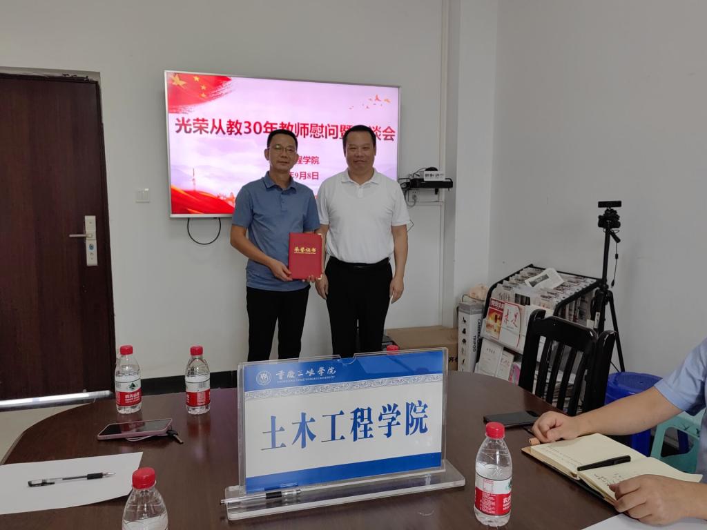 9月8日下午,76net必赢线路检测中心在慎思楼5栋401举行“光荣从教三十年”教师表彰暨座谈会,学校党委常委、副校长臧小林、人事处副处长黄晓龙,学院领导班子、从教三十年教师代表、青年骨干教师代表参加了此次会议。