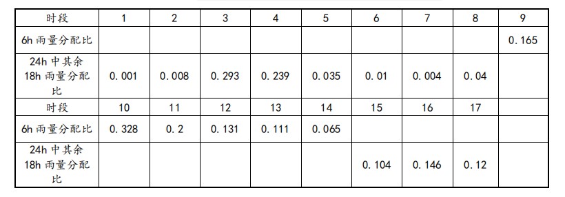 表5 24h设计雨型逐时(⊿t=1h)分配比值表