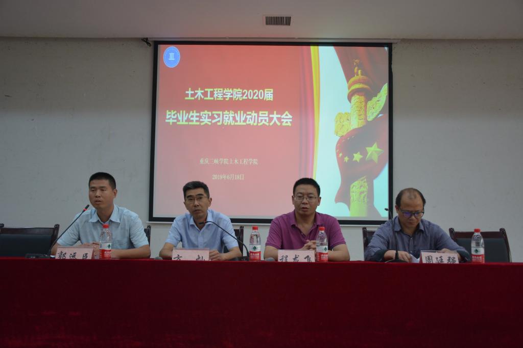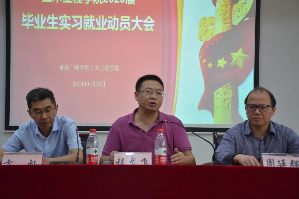 动员会上,方灿书记梳理了当下的就业形势,希望同学们树立正确的择业观、就业观,主动适应现阶段的发展趋势,鼓励同学们发扬工匠精神来提高自身核心竞争力,动员毕业生们下到基层锻炼自己、突破自己。郭远臣副院长布置了毕业实习和毕业论文各项工作,对毕业论文选题要求进行了解读,特别对毕业设计的要求和重要时间节点进行了强调。周廷强主任对学院本科生毕业实习管理办法进行了要点解读,重点强调了毕业实习要求以及毕业实习与毕业设计的结合,希望同学本们着对自己负责的态度积极参加实习、带着任务去实习,圆满完成实习任务。程龙飞院长作了总结讲话,希望2020届毕业生端正态度,积极参加实习,转变就业观念,端正就业动机,为我院争创一流学科奉献自己的青春力量。